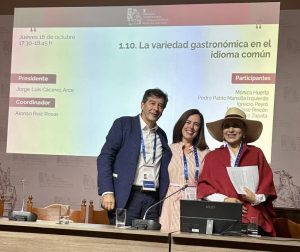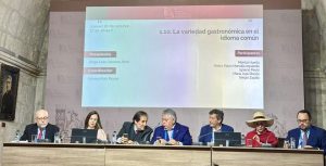 Para cerrar el panel, María José Rincón, directora del Igalex y académica numeraria dominicana, presentó la ponencia «Cocina y diccionarios. Palabras que alimentan», en la que reflexionó sobre la vinculación de un proyecto lexicográfico con la gastronomía debe partir de la reflexión sobre las características estructurales en un diccionario gastronómico de lengua en español: selección léxica (difusión general o local, cocina cotidiana o especializada, solo platos o también ingredientes, técnicas y utensilios), unidades simples o complejas, definición (lengua de la definición, definición lexicográfica/enciclopédica). El reto consiste en no olvidar que el protagonismo no está en las recetas, sino en las palabras; y el aliciente, en valorar que los hallazgos de un diccionario panhispánico de gastronomía podrían servir como ingredientes principales para los diccionarios de la lengua española, generales, integrales o restringidos dialectalmente.